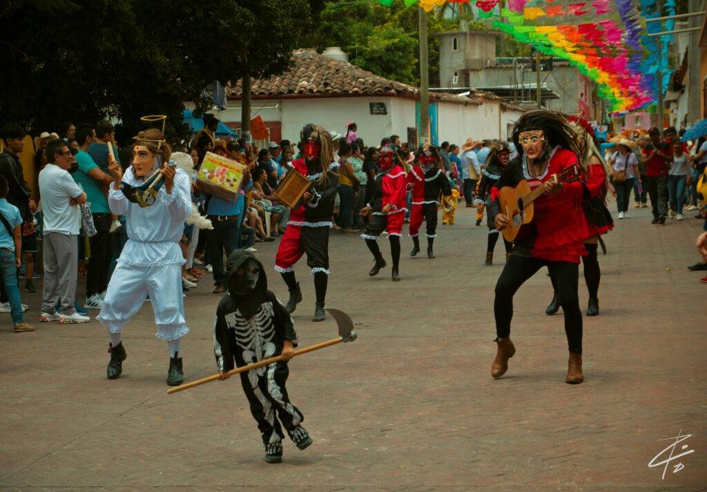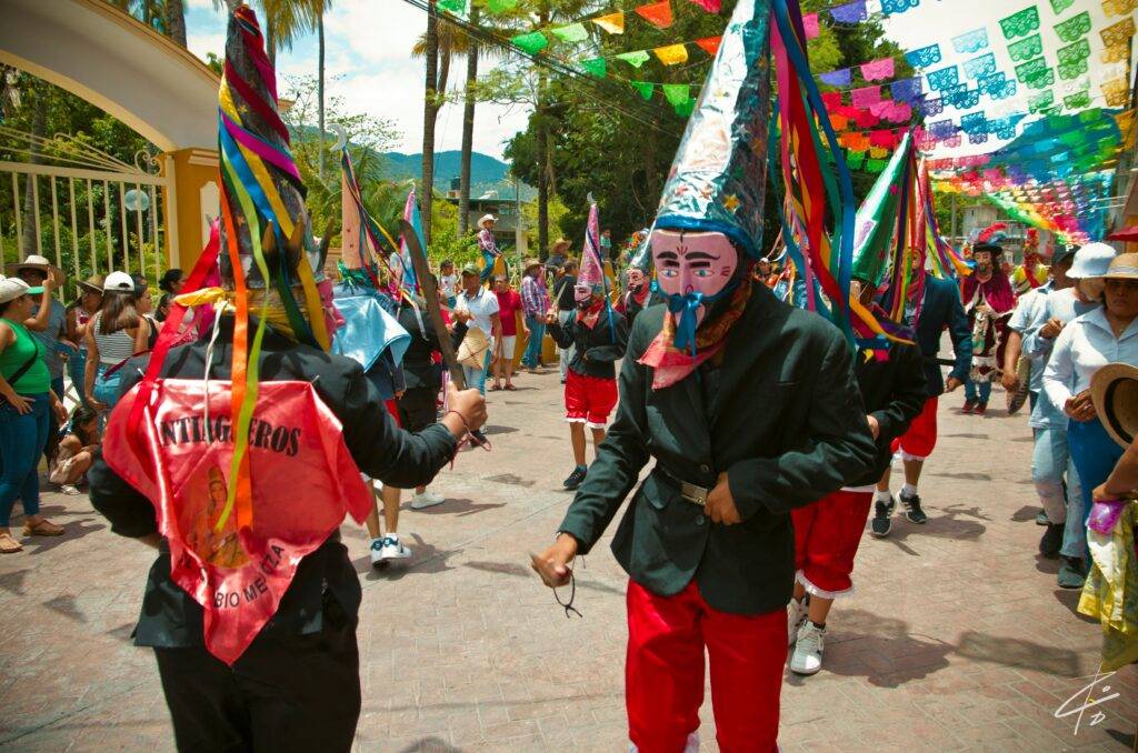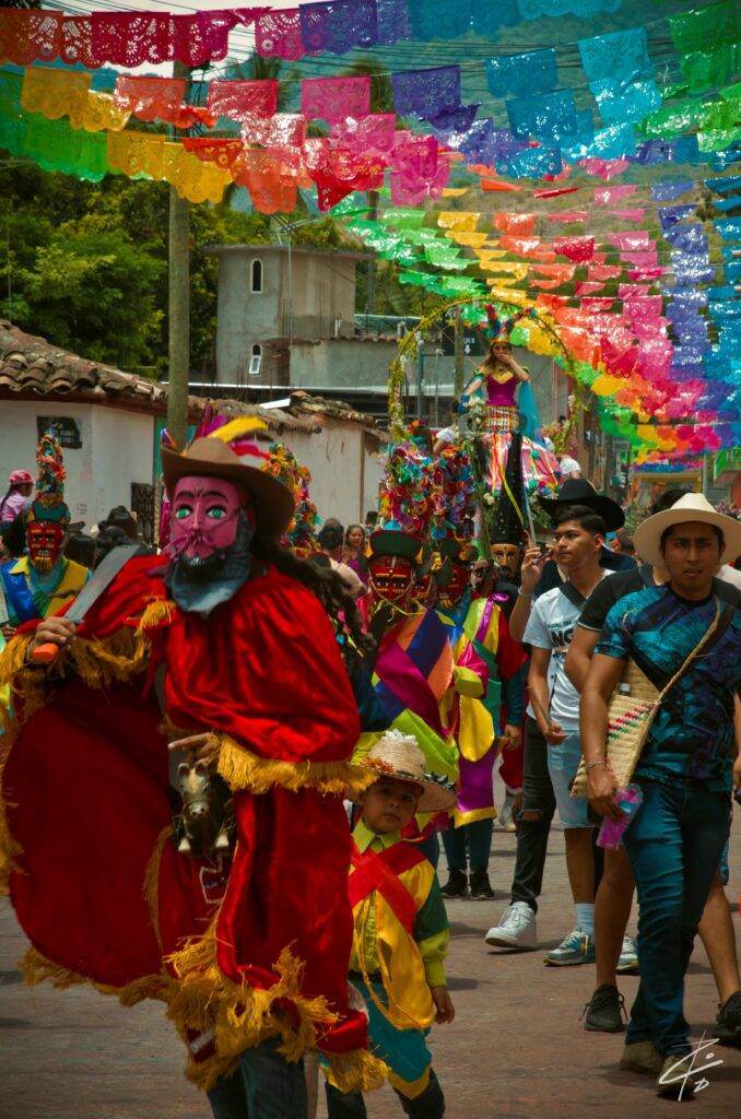 Visité Mochitlán y me tocó el anuncio de su feria que se hace en honor a la Virgen de Santa Ana. Esta es una de varias celebraciones que se realizan de julio a agosto. La virgen de Santa Ana, “la abuelita”, junto con la Virgen del Rosario, fueron intercambiadas entre los pueblos de Tecoanapa y Mochitlán en 1540. El fandango guerrerense no puede faltar estos días. Es curioso que al terminar el desfile de danzas, mucha gente se concentre en la casa del mayordomo, donde en agradecimiento, la familia anfitriona ofrece alimento y bebida a los que acudan a acompañar.