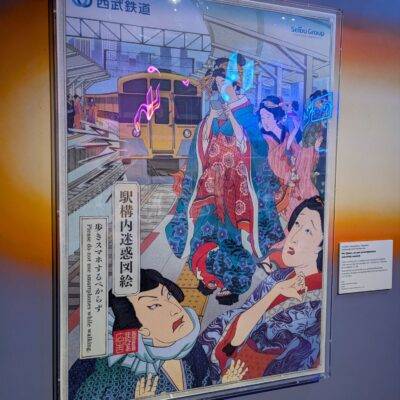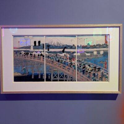 La expo está dividida en cuatro núcleos: cielo, mar, bosque y ciudad. Y dentro de ellas encontraremos grandes piezas de arte. Durante el recorrido encontramos diversos trabajos inspirados en las leyendas japonesas y pasajes del antiguo Japón. Quizá la obra de arte que hace más ruido es La gran ola de Kanagawa de Hokusai, que si bien es impresionante y todo un deleite observarla tan de cerca, también tenemos presentes algunos grabados geniales de otro artista fabuloso: Utagawa Hiroshige.