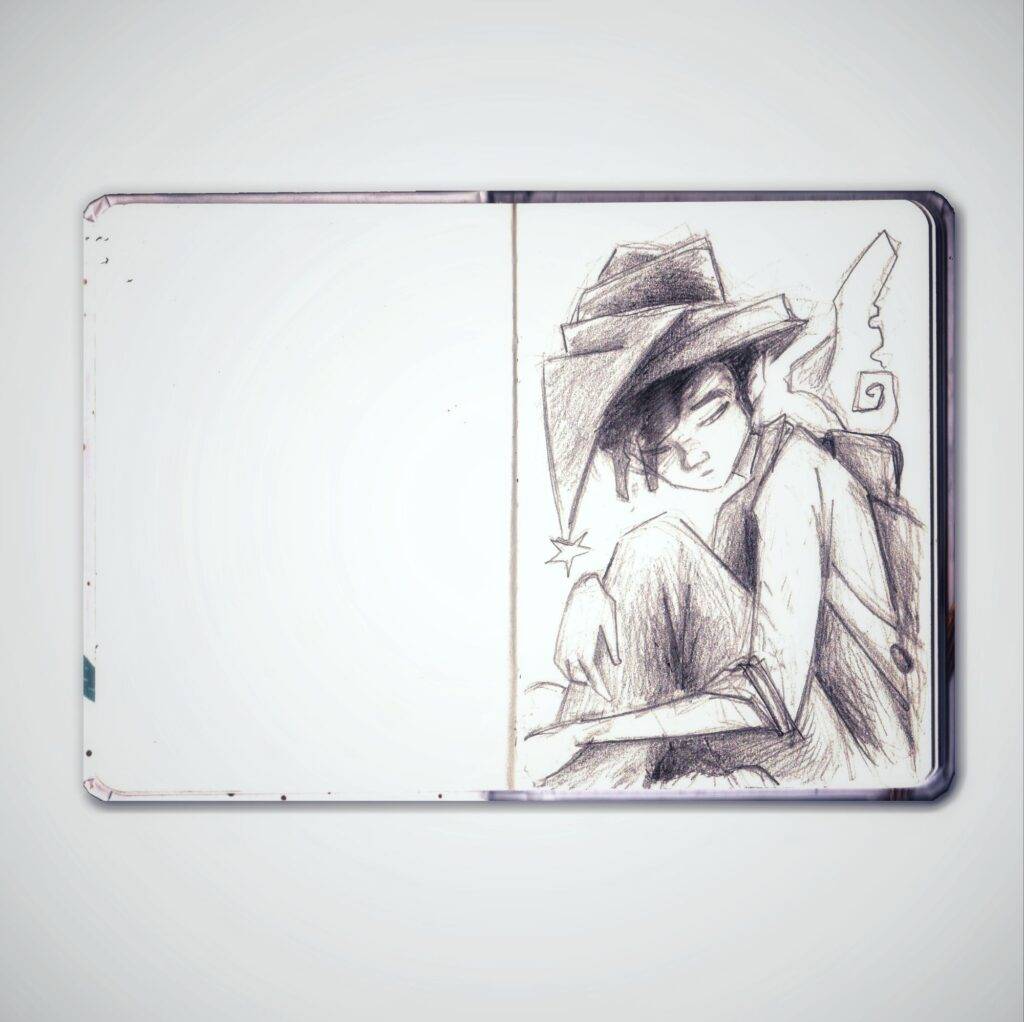 El boceto tiene esa magia: te permite ver el camino recorrido sin que nada se pierda. Todo lo bueno y lo malo permanece ahí. Ese rayón que parecía fuera de lugar ahora construye atmósfera, envolviendo la figura como si fuera energía vital.