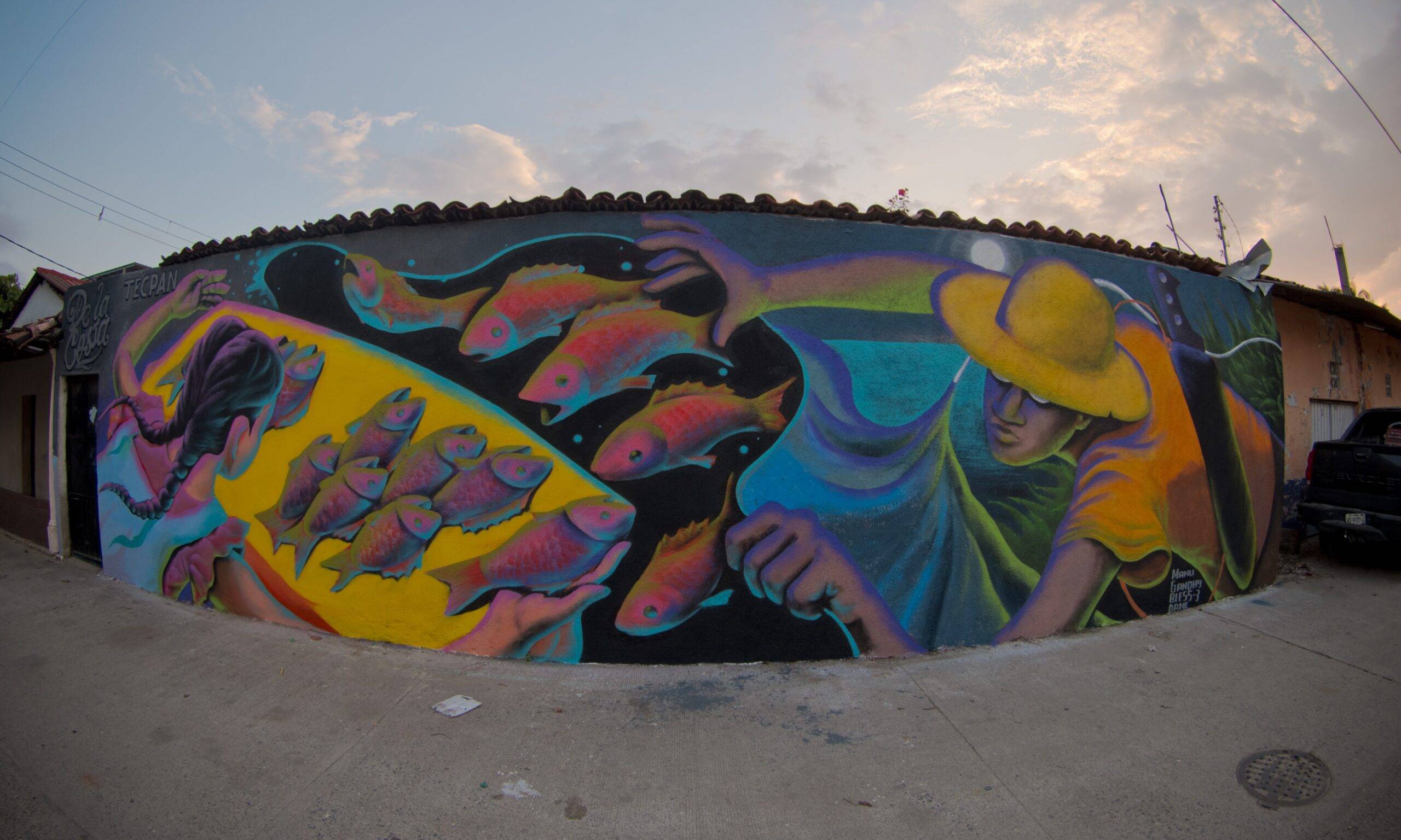 El crew De La Costa (Atoyac) son ya referente obligado de cada edición, un grupo de grandes amigos y compañeros que han apoyado bastante el movimiento y que son pioneros en la gestión de encuentros de Street Art y Mural en la zona.Fue muy padre conocer el trabajo de más pintoras locales, como HR Rosario de San Luis La Loma.José Luis Correa ya cuenta con dos obras realizadas durante las ediciones de Ruta Mural, y en ambas lleva ese estilo de pintar que lo caracteriza donde sus cuerpos desnudos se fusionan con el entorno y lo impregnan de belleza.Nopo es una pintora que nos visita por primera vez desde Zihuatanejo.Sibenc regresó por segunda ocasión y dejó en Tecpan un trabajo de lujo sobre las paredes de Bar “El Taller”Kirito es un joven creador de Tecpan integrante del Movimiento Muralista TecpanecoDrack también ha estado presente en todas las ediciones de Ruta Mural y en cada uno de sus trabajos ha honrado a personajes y elementos emblemáticos de Tecpan. Verlos siempre es un deleite visual.A un costado de Pizzas Tecpan se encuentra esta preciosa obra de Monyer titulada Cuando el juego tenía alma.Me dio mucho gusto volver a ver a Blaster Padilla, quien vino desde Chilapa a participar en su primera edición de Ruta.Nath Rosas trae un estilo muy chido y vino desde Acapulco para realizar este mural lleno de color sobre el ahora es el hotel “Kumbala”También de Acapulco, Sloters realizó esta pintura enorme, llena de vida, dedicada a todos los habitantes de Tecpan.Me gustó bastante esta obra de Baick titulada “Chile Frito”. Me encanta porque creo refleja el desfogue y catarsis de un pueblo como lo es Tecpan tan alegre y con mucha algarabía.