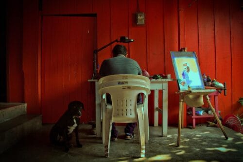 Conocí a Wipo Mata por ahí del 2010, tendría yo 25 y el tal vez no pasaría de 18; un compañero en común nos invitó a participar en alguno de sus eventos culturales. En mí cabeza aún no pasaba por la mente comenzar a pintar. Nuestra particularidad en común era el dibujo, y él ya lo practicaba con destreza. Ese primer encuentro fue breve, volveríamos cada quien a lo suyo.